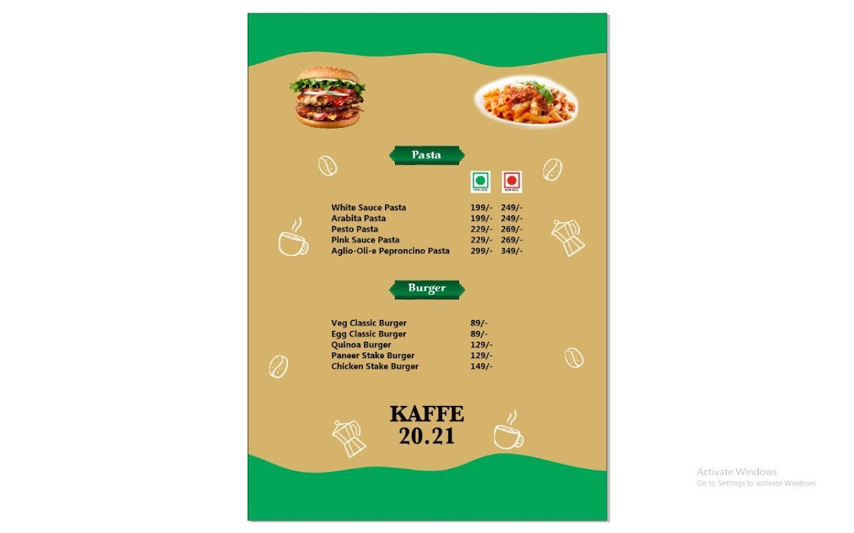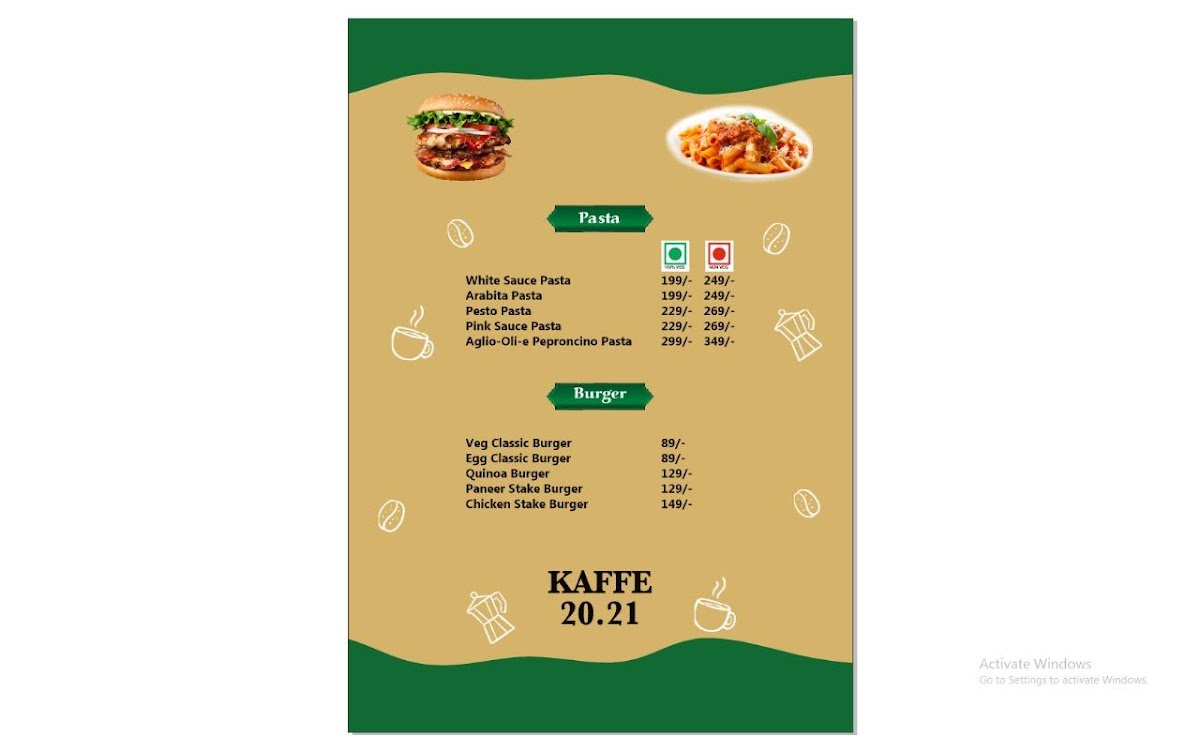 Introducing the menu at Kaffe 20.21, a vibrant cafe nestled near Lloyd College in Greater Noida, promises a delightful culinary experience that beautifully fuses Italian and Chinese cuisine. The highlights of the menu feature an array of flavorful dishes, including a variety of flavorful noodles such as Hakka Noodles at ₹269 and Singapore Noodles at ₹289, satisfying any noodle lover's cravings.